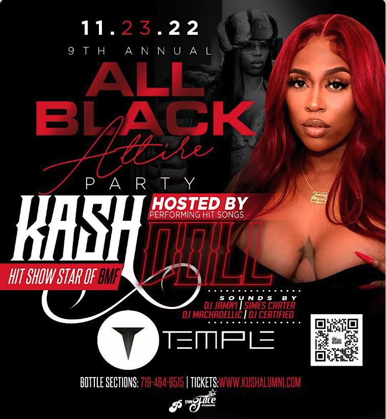 Temple Nightclub is hosting one of the most anticipated formal events of the year with an all black dress code on Thanksgiving eve featuring hit tv show star of BMF: KASH DOLL along with DJ JAMN'I, SIMES CARTER, DJ MACHADELLIC & DJ CERTIFIED.