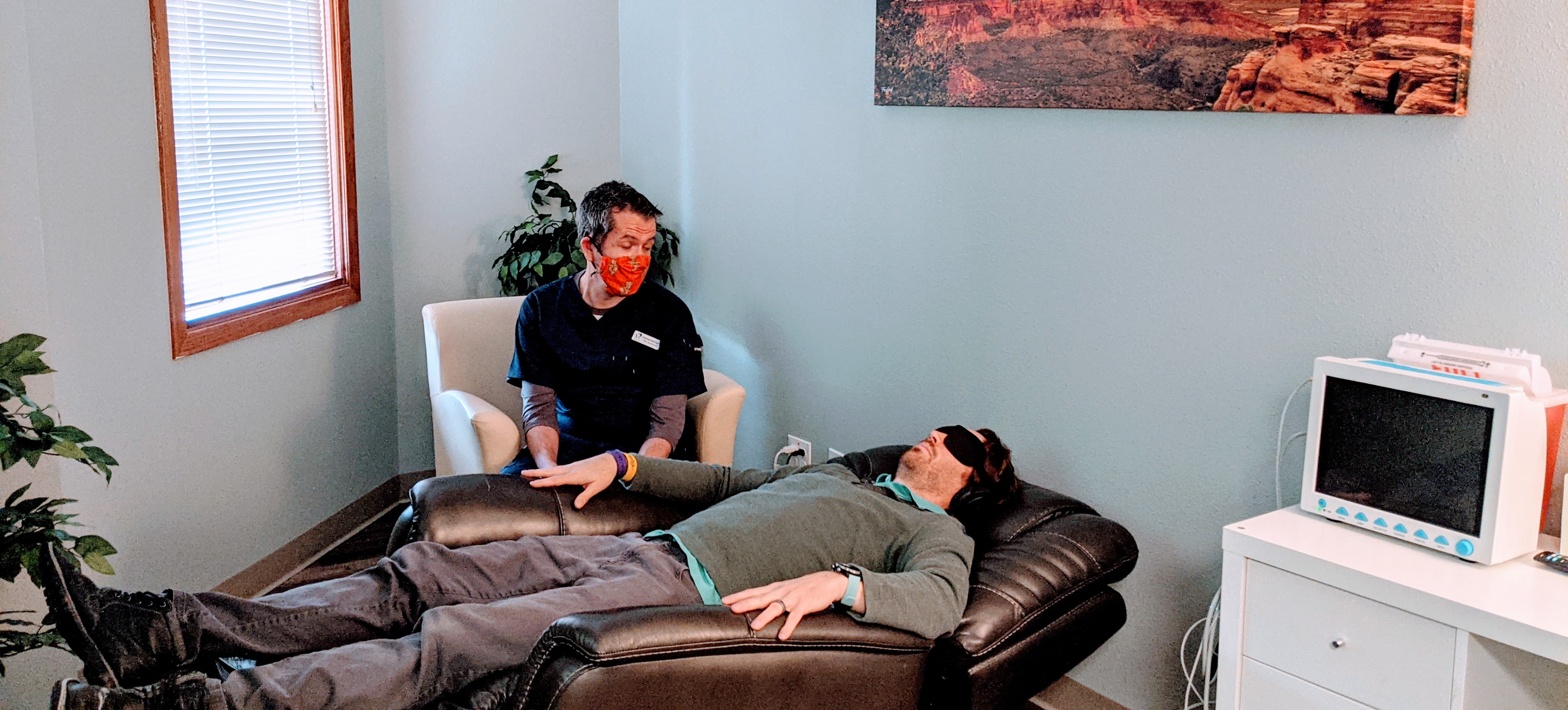 Klarisana now works with Medicaid to pay for ketamine therapy. Here, a patient at Klarisana is attended by Klarisana's Director of Mental Health Desmond Wallington. Photo credit: Reilly Capps