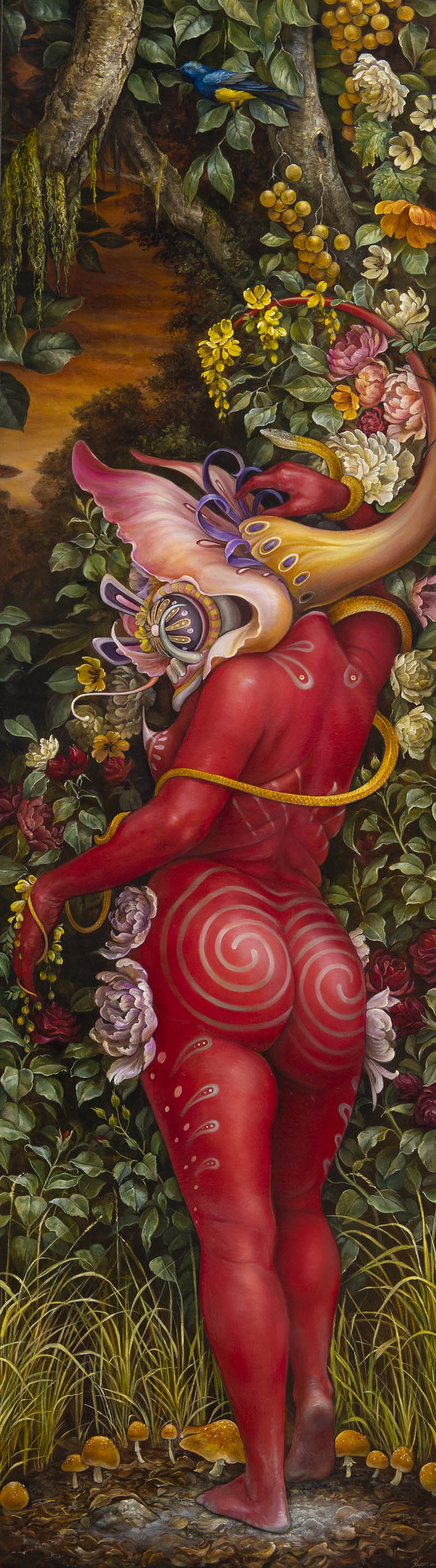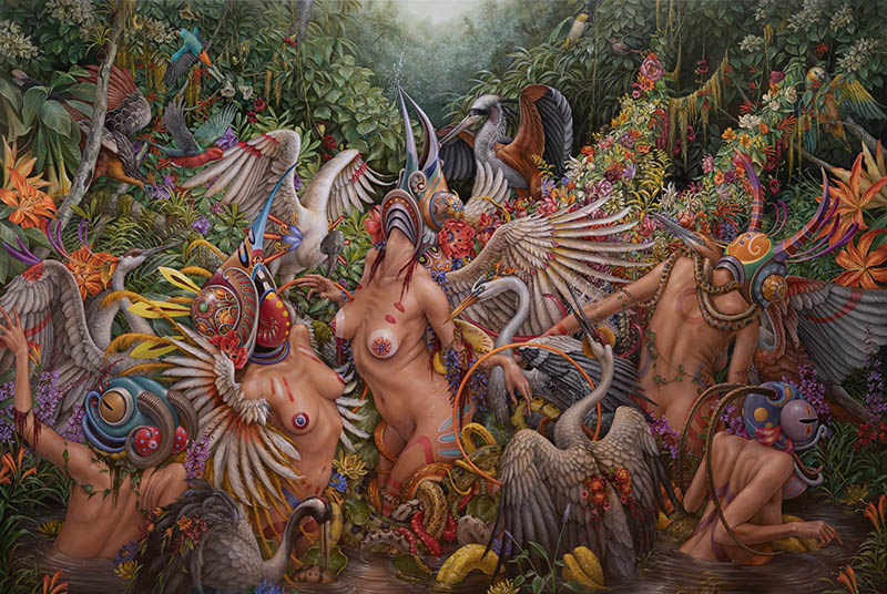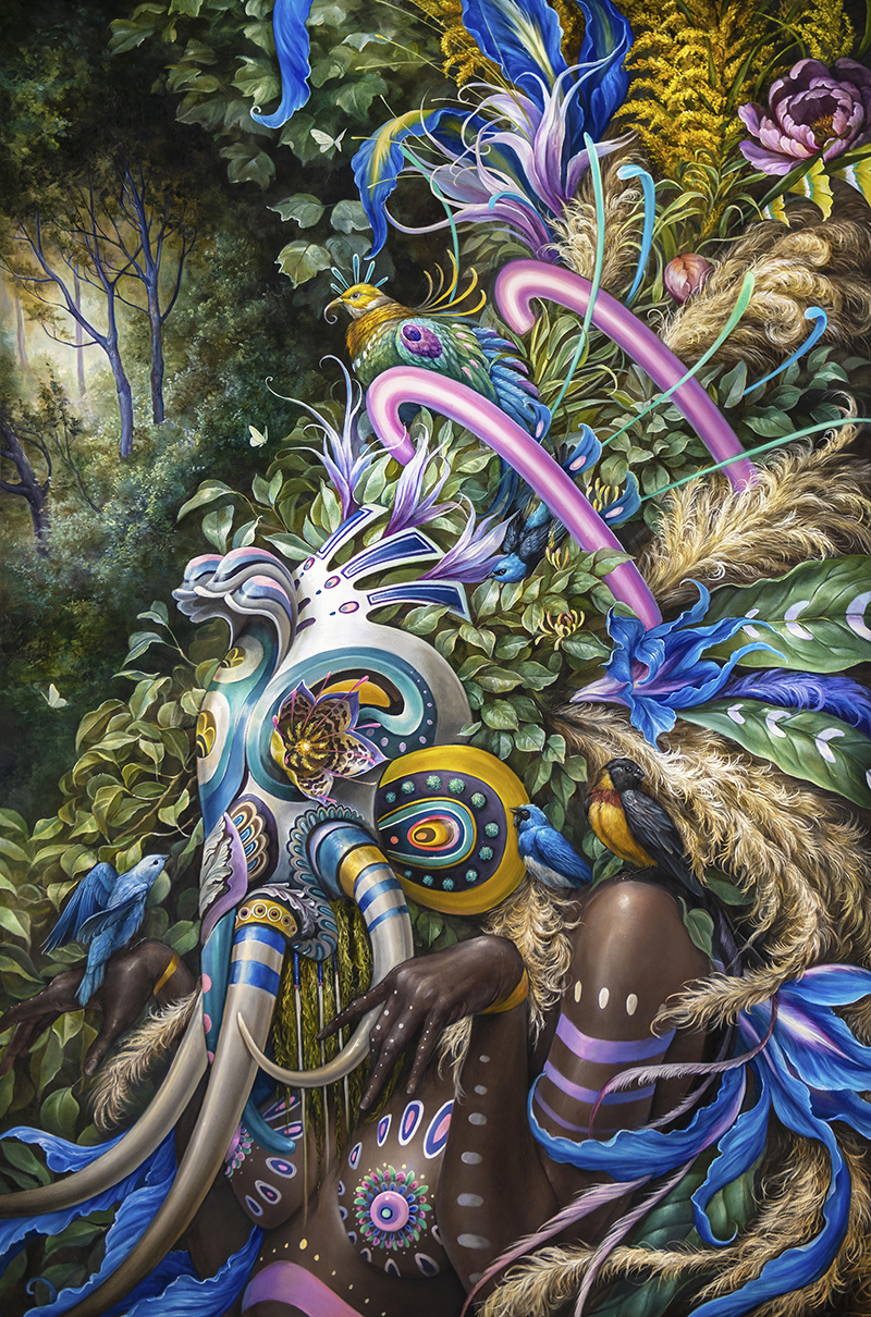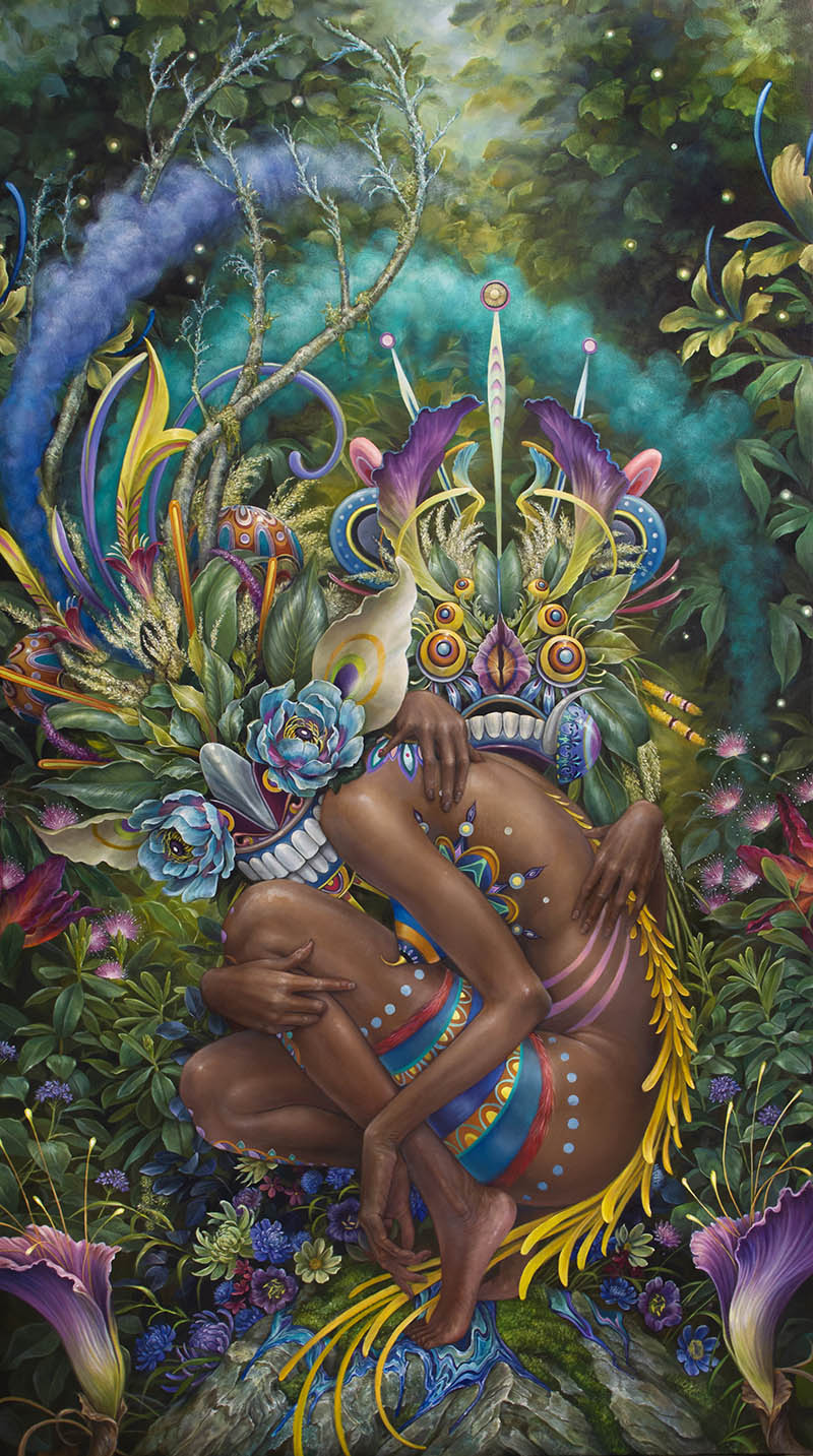 A lot of your paintings feature mythological type characters that appear to be a hybrid of women and nature. How did you conceptualize this kind of subject matter?