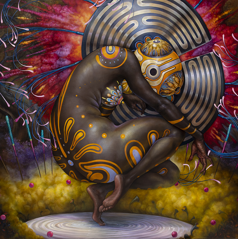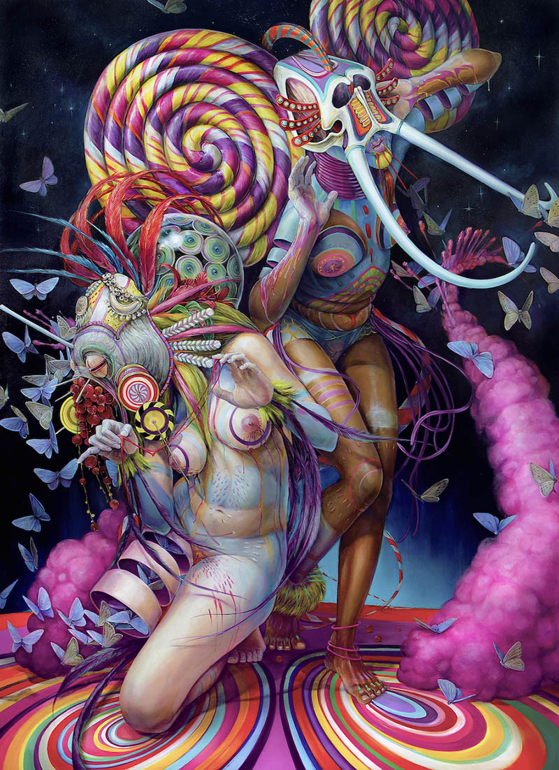 Growing up in a religious family and later getting kicked out completely upended my view on polarities. In fundamentalist religions, they teach you that everything is either black or white, i.e. good vs. evil. I was taught that the only good people were Jehovah's Witnesses, and everyone else was under the influence of the devil. I had to completely reevaluate people with differing belief systems and ways of life. I realized everything this religion had taught me about the outside world and the people who didn't believe in it was false. I would say this shook my perception of reality itself was shaken to its very core, which probably lends my work to its very early psychedelic slant. Art was the way to express my struggle with reality, identity, psychological disintegration, and revolution that followed with integrating into mainstream society. I woke up to a whole new view of beauty and compassion in a world that I had taught was evil and damned.
