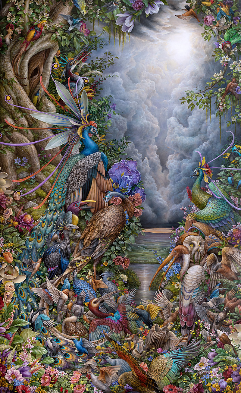 I'm currently working on a few paintings. One of these paintings is a third large piece encumbered with birds inspired by the poem the Conference of the Birds by Attar. There's a lot of chaos going on, but I'm enjoying it since I have no deadlines at the moment.