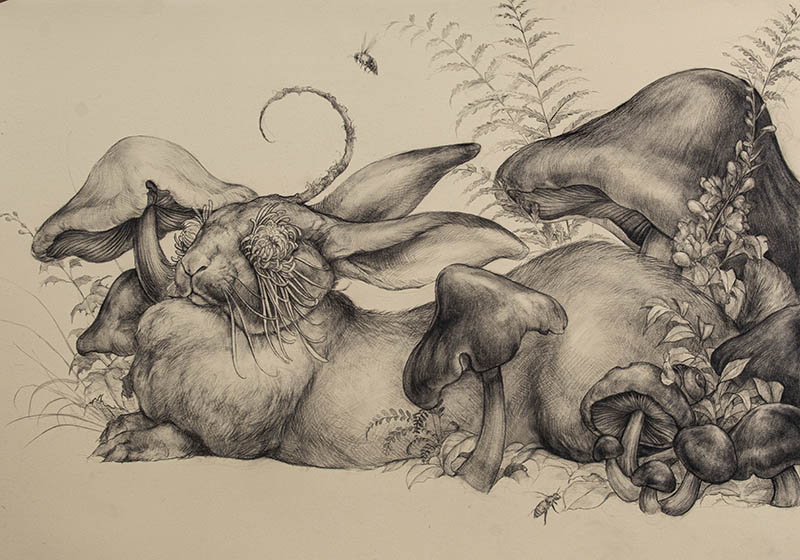Nature, mystery, magic, and the feminine. These are some of the words that come to mind when trying to describe the world Hannah Yata composes with her art. With her hybrid creatures; half woman, half animal, she explores symbolism, emotion, and reflection of the elements that create life. You can get lost in wonder looking at her paintings, they are provocative with a sense of mystery, curiosity and power. Her art evokes and invites you to step inside her ethereal, mystical and at times, psychedelic world.
