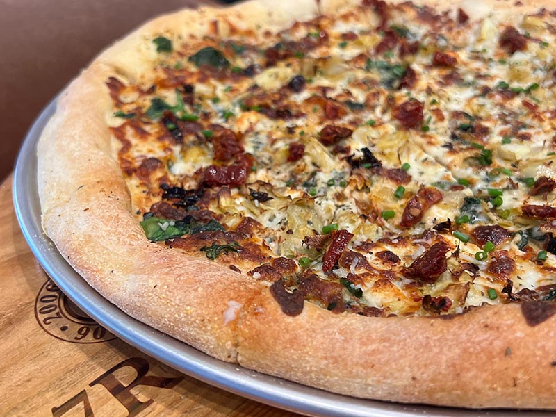 At the center of the creative food and beverage menu are the hand-tossed, made-to-order pizzas, cooked in the restaurant’s pizza oven. Guests can choose from 12 Specialty Pizzas, such as the Hot Honey with crushed San Marzano tomato sauce, mozzarella cheese, hot capocollo, bacon marmalade, and habanero honey, or opt to make their own with a large selection of toppings (including 20 vegetables), plus a variety of classic and Italian meats, sauces, cheeses, drizzles, and enhancements. Dietary restrictions are respected here, with gluten-free crust and impossible meat options.