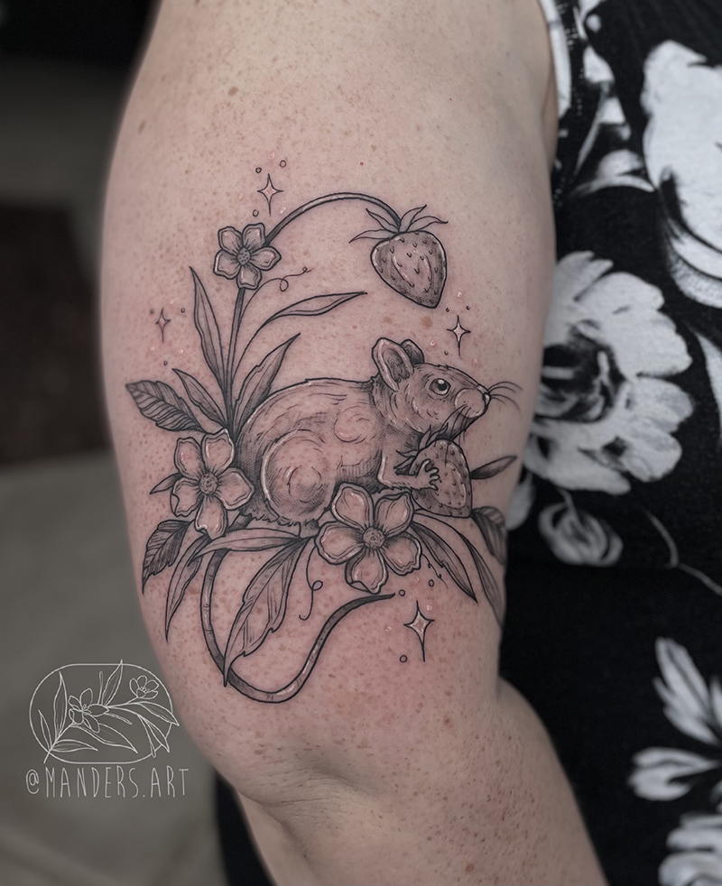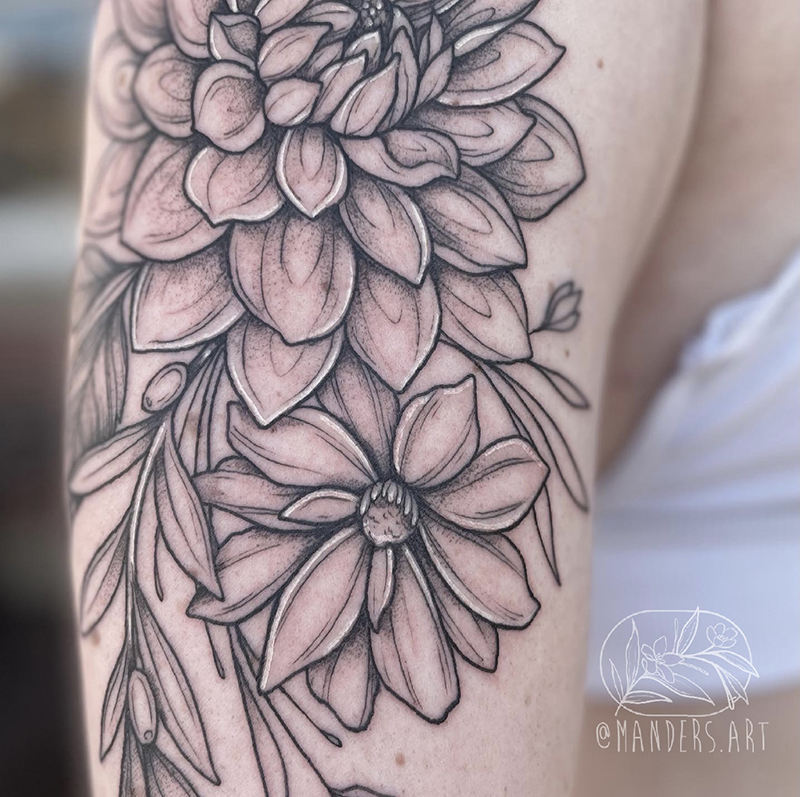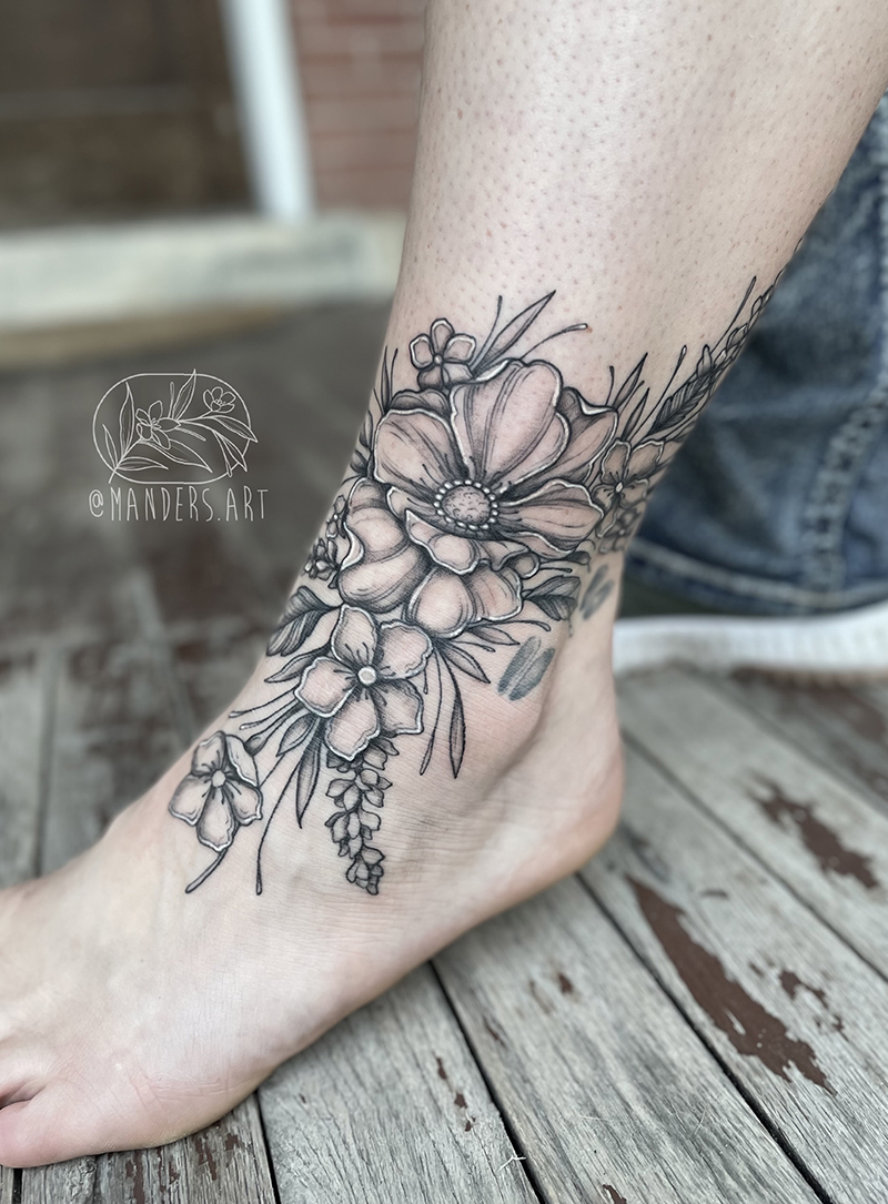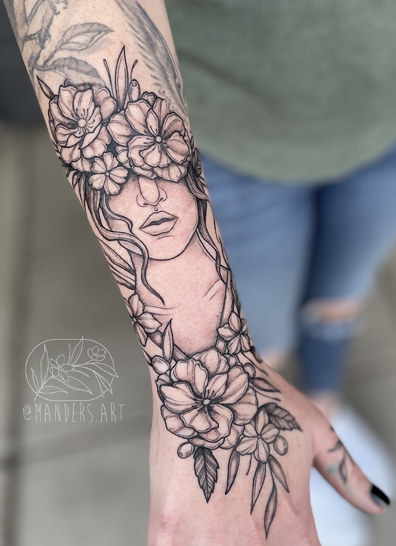 This style has always been close to me. Looking back at the artwork that I made during high school and during my apprenticeship, I’ve always been drawn to fine lines and feminine designs. When I first started tattooing, you don’t really get to pick what you do everyday, and end up just taking what comes through the door. It was awesome to gain experience doing multiple styles, but I always found myself at peace, and doing my best work, when it was my style. After my first year of tattooing, I was able to market that style a little better and now my clients come to me for it specifically!