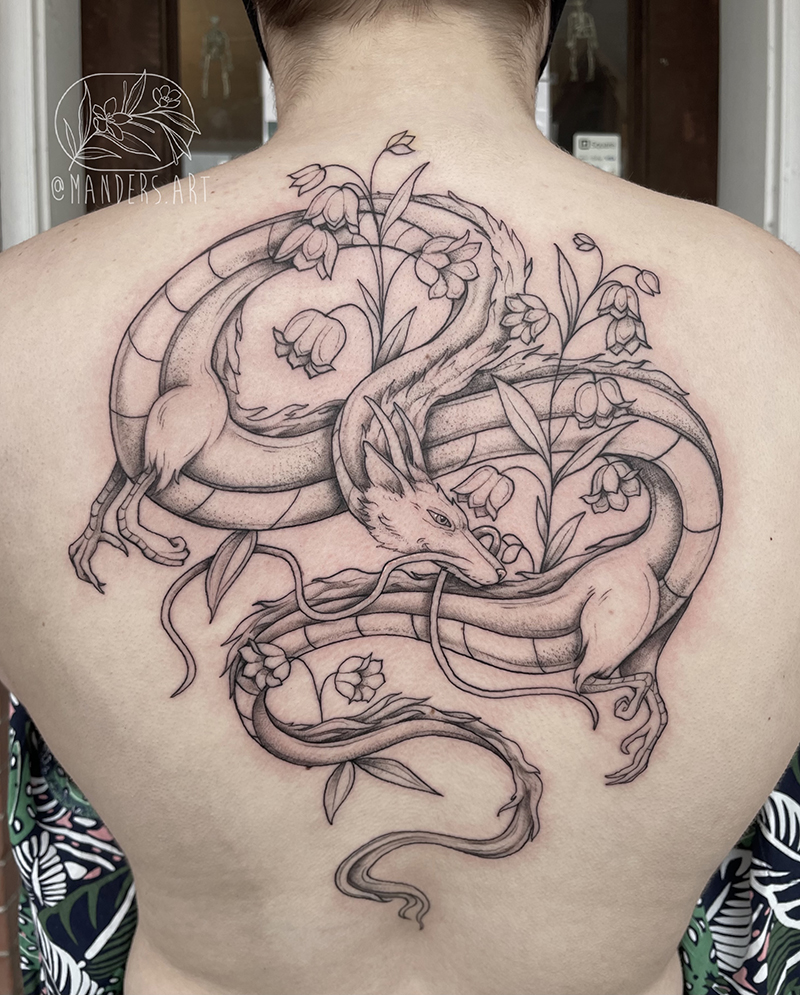 My favorite part is the way it compliments the human body! A majority of my clients come in looking for something that is feminine and doesn’t feel heavy or dark, and it’s such a good feeling watching them leave loving their new body adornments. The thing that draws me most to this style is probably the small accent lines! I usually don’t like sitting still or focusing for too long, but over the years it’s become quite relaxing. Almost a meditation.