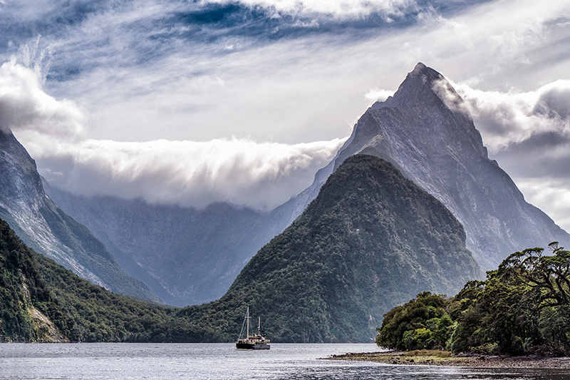 Mitre Peak in Milford Sound, New Zealand. This amazing peak rises 5,560 feet directly from the coastline - higher than Denver! We did an overnight cruise on the boat in the picture, which was quite an adventure.